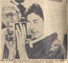 Η Σοράγια (1932-2001),  η "μελαγχολική πριγκίπισσα", υπήρξε δεύτερη γυναίκα του Σάχη της Περσίας Μοχαμάντ Ρεζά Παχλεβί, με τον οποίο την έδεσε, όπως λέγεται, ένας κεραυνοβόλος έρωτας αλλά την απομάκρυνε ένας υποχρεωτικός χωρισμός, καθώς δεν μπορούσε να του χαρίσει διάδοχο. Έτσι τον Φεβρουάριο του 1958 εγκατέλειψε το Ιράν και έζησε σε διάφορες χώρες προσπαθώντας να κάνει, χωρίς επιτυχία προφανώς, καριέρα στο σινεμά. Ανάμεσα στα ταξίδια της, προς τα τέλη Μαϊου το 1960, και για δύο εβδομάδες, βρέθηκε και στην Αθήνα, προσκεκλημένη της παλιάς της συμμαθήτριας σε κολέγιο της Ελβετίας και φίλης της, Νάντυς Νικολούδη. Τροφοδότησε έτσι με αρκετό υλικό τον Τύπο εκείνης της εποχής: δηλώσεις, φωτογραφίες από εκδρομές στο Σούνιο, αξιοπρεπή ταγκό με τον τότε αντιπρόεδρο της κυβέρνησης, Π. Κανελλόπουλο και το στιγμιότυπο που βλέπετε εδώ. Η Σοράγια κρατάει μια ερασιτεχνική μηχανή λήψης (μάλλον 16mm) με το μάτι της κολλημένο στο βιζέρ. Να ήταν μια "στημένη" πόζα προκειμένου να υπομνησθούν οι κινηματογραφικές της φιλοδοξίες; Ή ένα αυθόρμητο ενσταντανέ, η αυθόρμητη κίνηση μιας οποιασδήποτε τουρίστριας να συλλάβει μέσα από τη μηχανή της κάτι που την εντυπωσίασε; Να ήταν δική της η μηχανή λήψης ή να της την είχε δανείσει κάποιος από τους Έλληνες οικοδεσπότες της; Όποια και να είναι η απάντηση, ευχόμαστε να υπάρχουν και να εντοπιστούν κάπου, κάποτε, αυτά τα εφήμερα φιλμάκια της θλιμμένης πριγκίπισσας.