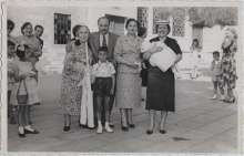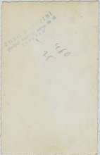 Ορφανή φωτογραφία πίσω όψη Στο προαύλιο εκκλησίας αναμνηστική φωτογραφία συγγενών (οι γονείς και η ανάδοχος;). Η φωτογραφία εντοπίστηκε στην Κωνσταντινούπολη, σε παλαιοπωλείο του Beyoglu (Πέραν). Κωδικός ορφανά RPH-0007