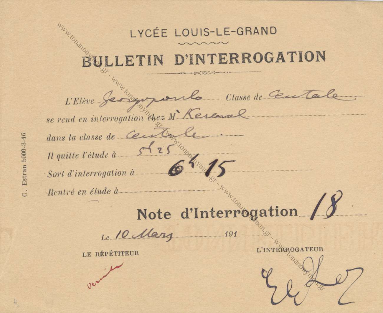 BULLETIN D' INTERROGATION